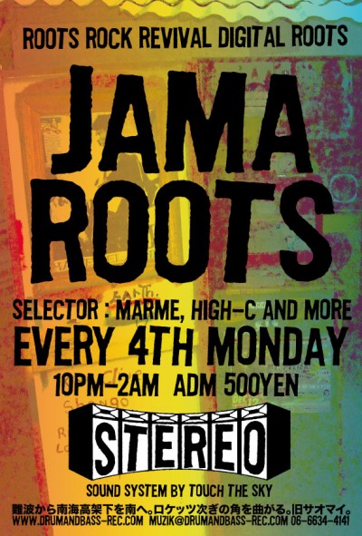 2011.12.26(Mon) [ Jama Roots ] at Club Stereoby nekomaSTEREO SCHEDULE2011/12/09 2011.12.26(Monday) [ Jama Roots ] High-C,Marme Genre: Roots Rock Revival 70’s-80’s Digital Roots ADM: 500Yen 10:00PM〜