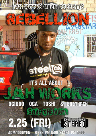 2011.2.25(Fri) [ Rebellion ] at Club Stereoby nekomaSTEREO SCHEDULE2011/02/15 2011.2.25(Friday) [ Rebellion ] DJ: Jah Works Ogidoo, Oga, Toshi & Brethren Genre: Dancehall 80’s-New ADM: 1000Yen 10:00PM〜4:00AM