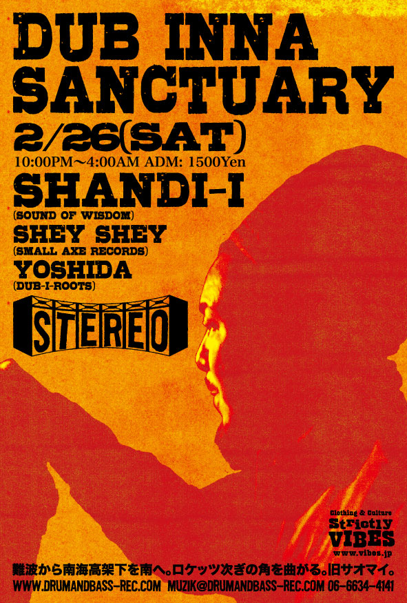 2011.2.26(Sat) [ Dub Inna Sanctuary ] at Club Stereoby nekomaSTEREO SCHEDULE2011/01/30 2011.2.26(Saturday) [ Dub Inna Sanctuary ] DJ: Shandi-I, Shey Shey,Yoshida Genre: Modern Roots, Revival Roots ADM: 1500Yen 10:00PM〜4:00AM