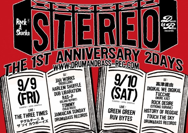 Tsukasa RecordsのKanayamaを中心に、Regal Iwah、NissanがStereo第1月曜日に開催するNew Roots、Digital Rootsのイベント。ベース中毒者が集合。
