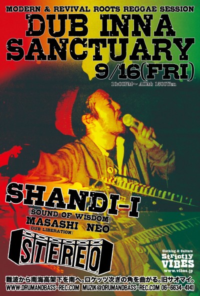 2011.9.16(Fri) [ Dub Inna Sanctuary ] at Club Stereoby nekomaSTEREO SCHEDULE2011/08/22 2011.9.16(Friday) [ Dub Inna Sanctuary ] DJ: Shandi-I,Masashi,Neo Genre: Modern Roots, Revival Roots ADM: 1500Yen 10:00PM〜
